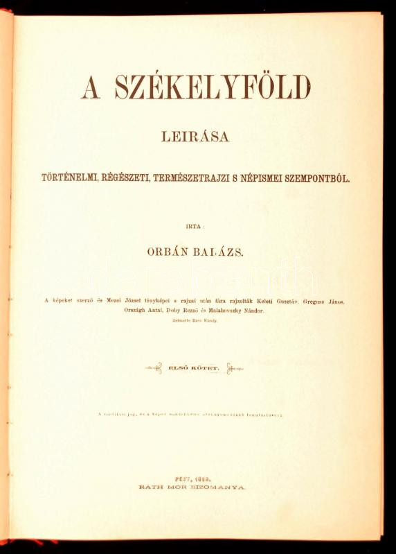Orbán Balázs: Székelyföld leirása. Reprint kiadás. I. kötet. Csatári Dániel kísérőtanulmányával. Bp., 1982, Helikon. Kiadói egészvászon-kötésben.