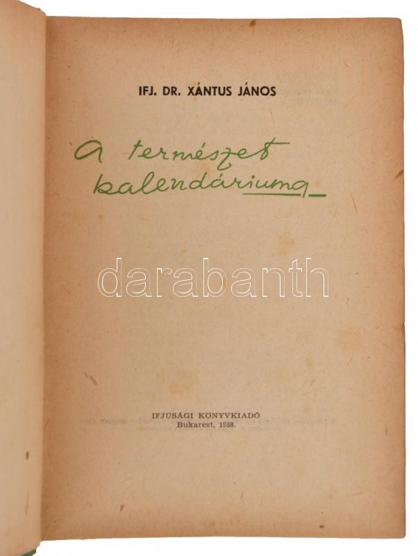 ifj. Xántus János: A természet kalendáriuma Bukarest, 1957, Ifjúsági Könyvkiadó. Kiadói félvászonkötésben.