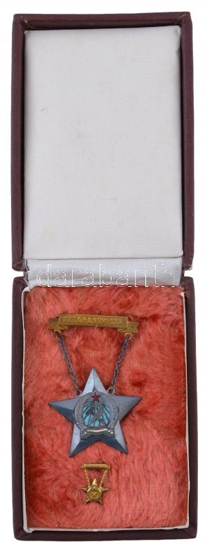 1953. "Sztahanovista" zománcozott fém kitüntetés miniatűrrel dísztokban T:2