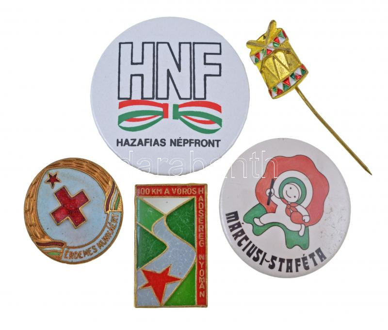 5db-os vegyes szocialista kitűző tétel, közte "Érdemes munkáért" vöröskeresztes jelvény (24,5mm) T:2,2-