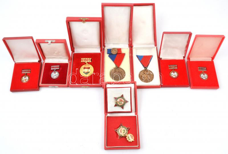 9db-os vegyes magyar szocialista kitüntetés tétel, mindegyik tokban, közte "Munkásőr", "MHSZ - Kiváló Munkáért" több fokozata T:vegyes