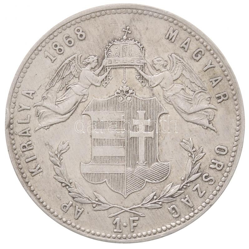 https://www.darabanth.com/en/262-Online-auction/262.0/Numismatics/Hungarian-coins-and-coins-with-Hungarian-mint-marks~200009/1868KB-1Ft-Ag-Ferenc-Jozsef-Angyalos-cimer-Kormocbanya-12-34g-T2-tisztitott-ph---Hun~II1246606