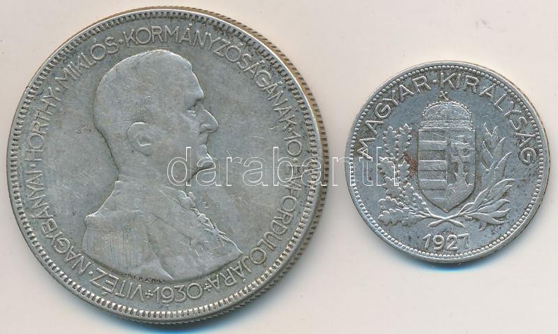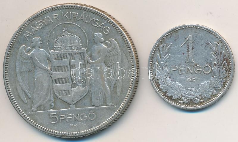 https://www.darabanth.com/en/262-Online-auction/262.0/Numismatics/Hungarian-coins-and-coins-with-Hungarian-mint-marks~200009/1927-1P-Ag-plus-1930-5P-Ag-Horthy-jobbra-T2-3---Adamo-P6-P8~II1303136