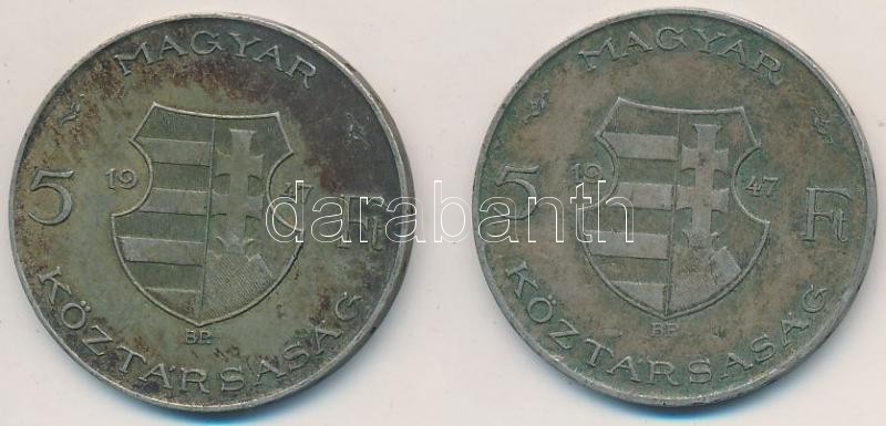 https://www.darabanth.com/en/262-Online-auction/262.0/Numismatics/Hungarian-coins-and-coins-with-Hungarian-mint-marks~200009/1947-5Ft-Ag-Kossuth-2x-T2-3-szennyezodes-patina~II1304406