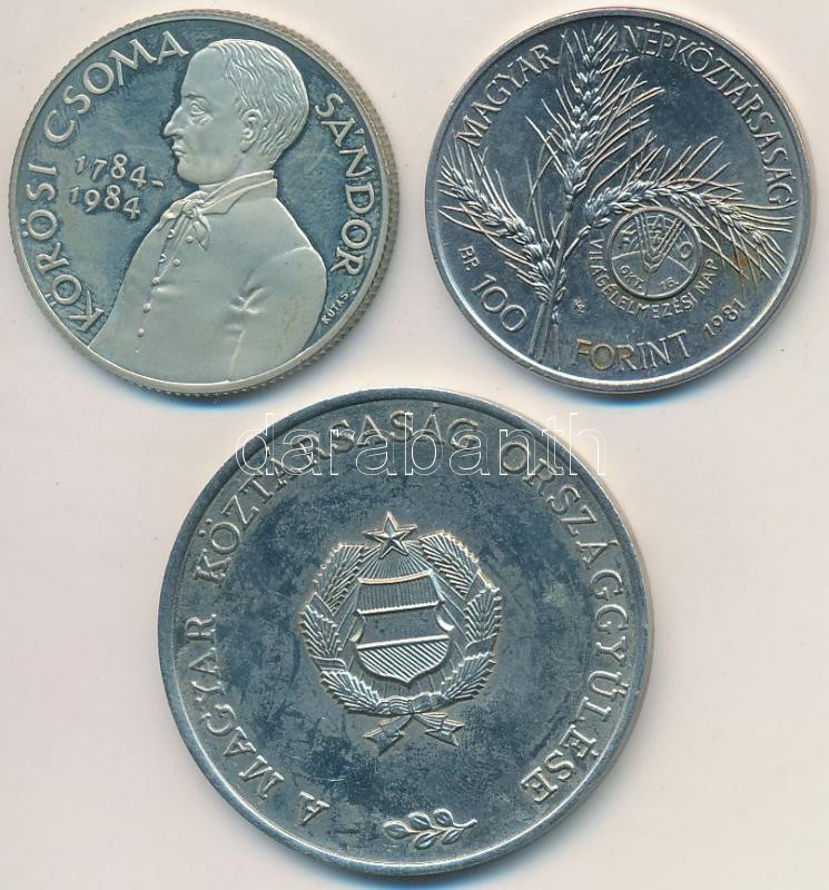 https://www.darabanth.com/en/262-Online-auction/262.0/Numismatics/Hungarian-coins-and-coins-with-Hungarian-mint-marks~200009/1981-100Ft-FAO-plus-1984-100Ft-Korosi-Csoma-Sandor-kisse-serult-tokban-tanusitvannyal-plusD~II1304735