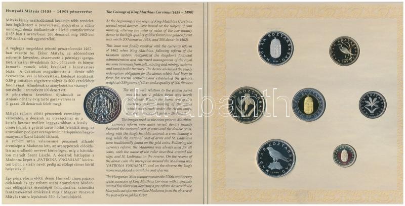 2008. 1Ft-100Ft 7klf db + Mátyás denár Ag fantáziaverete "Reneszánsz emlékév" dísztokos szettben T:PP
