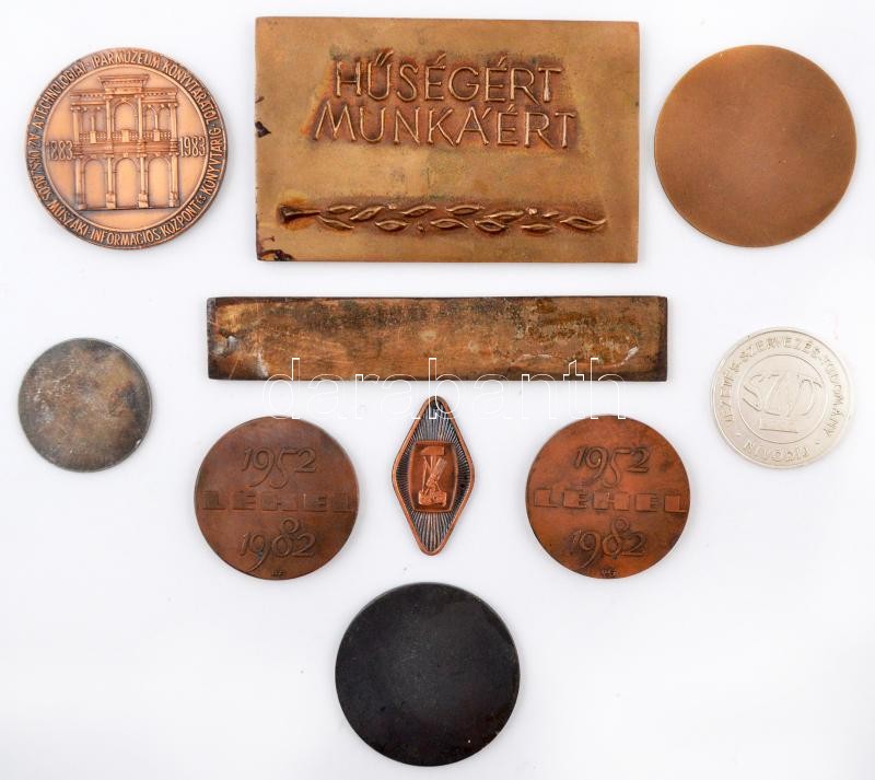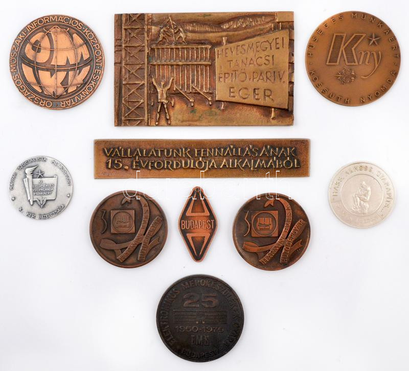 10db vegyes emlékérem, plakett, közte DN "Heves Megyei Tanácsi Építőipari Vállalat Eger" Br plakett (114x72mm) T:vegyes