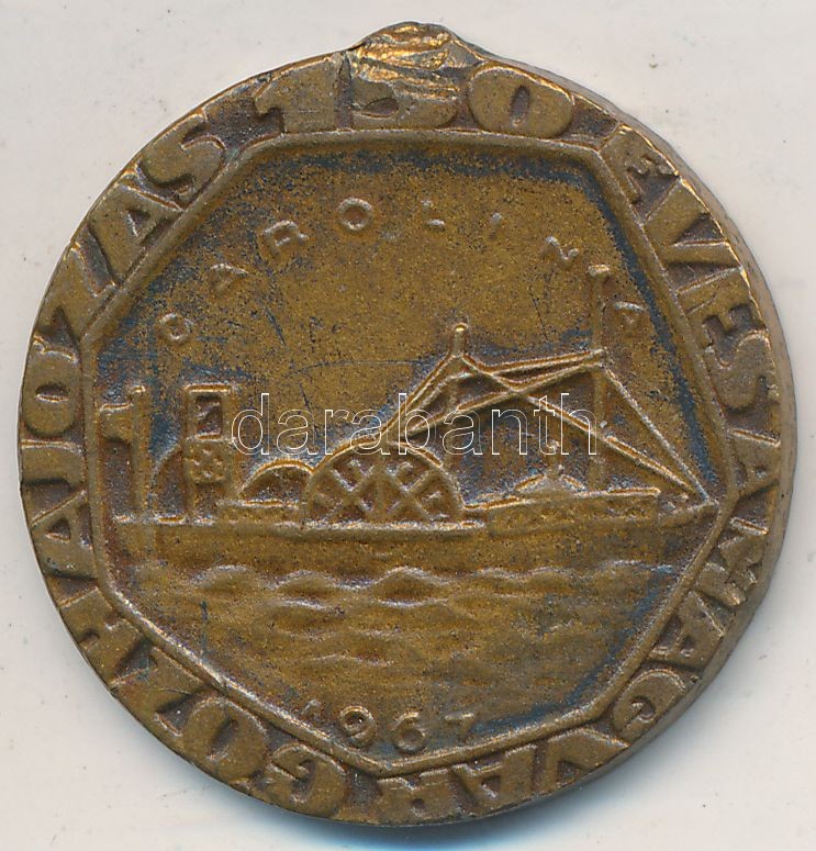 1967. "150 éves a magyar gőzhajózás - Carolina / MHRT Hunyadi" Br emlékérem, fül letört (30mm) T:2-