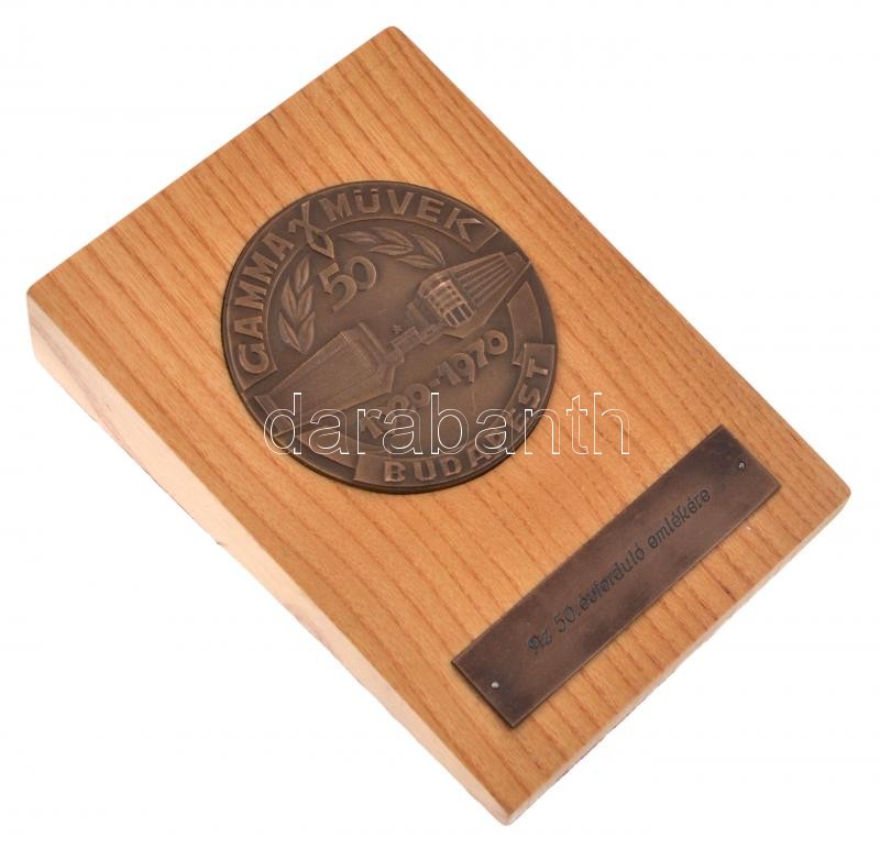 1970. "50 éves a Gamma művek / Az 50. évforduló emlékére" Br... https://www.darabanth.com/en/262-Online-auction/262.0/Numismatics/Hungarian-commemorative-medals-and-plaques~200010/1970-50-eves-a-Gamma-muvek-Az-50-evfordulo-emlekere-Br-plakett-fatalpon-70mm-plus-Chemim~II1302212