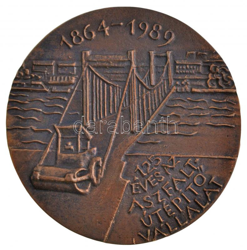 1989. "125 éves az Aszfaltútépítő Vállalat 1864-1989" Br emlékplakett dísztokban (90mm) T:2