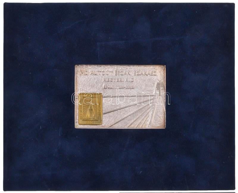 2008. "M0 Autóút Északi Szakasz Megyeri Híd - Épült 2006-2008." ezüstözött fém plakett, benne "Megyeri Híd Pénz", dísztokban (96x67mm) T:1-