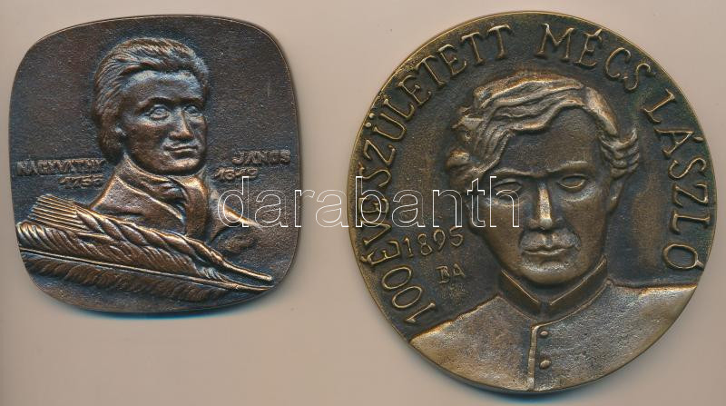 ~1970. "Nagyváthy János 1755-1819" kétoldalas Br plakett (77,5mm) + Beck András (1911-1985) 1995. "100 éve született Mécs László" Br emlékplakett (97mm) T:2