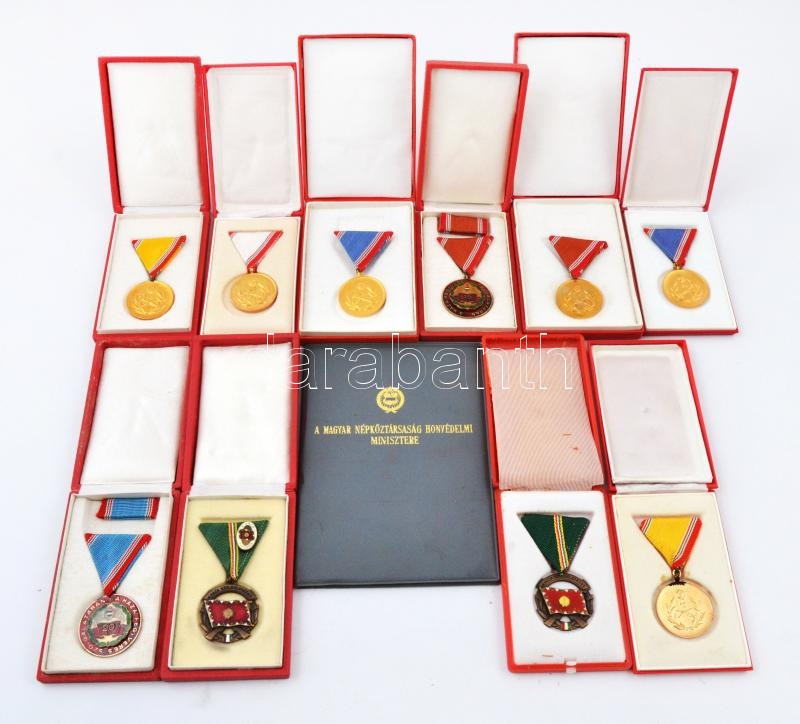 Description: 10db-os vegyes magyar kitüntetés tétel a szocialista korszakból, közte "A Haza Szolgálatáért", "Honvédelmi Érdemérem", "Honvédelmi érdemérem adományozói okirat" T:vegyes