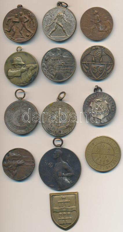 13db-os vegyes magyar sportérem tétel, közte "Magyar Athletikai Club", "Lövész érem", "Budapesti Torna Egylet 1875" T:vegyes
