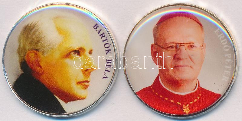 DN 50Ft "Nagy Magyarok / Bartók Béla, Erdő Péter" (2x) multicolor emlékérme sorozatból, ezüstözött Cu-Ni T:2