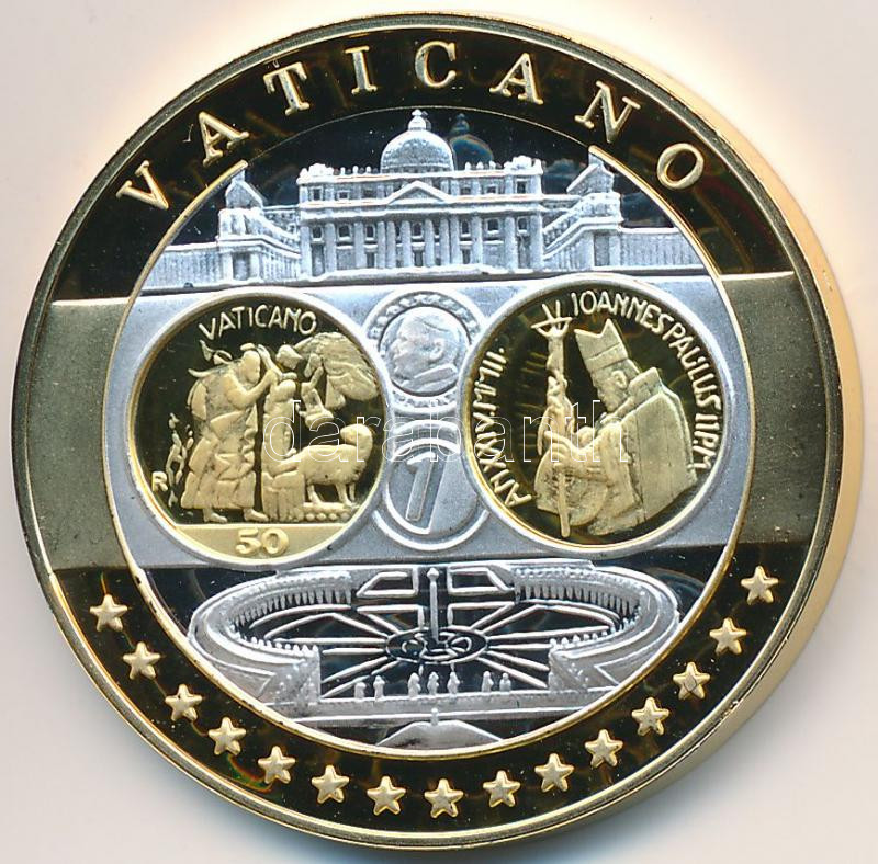 DN "Emlékérem az euróövezet országainak közös valutájáról - Vatikán" aranyozott, ezüstözött Cu-Ni emlékérem sorszámozva (35,1mm) T:PP