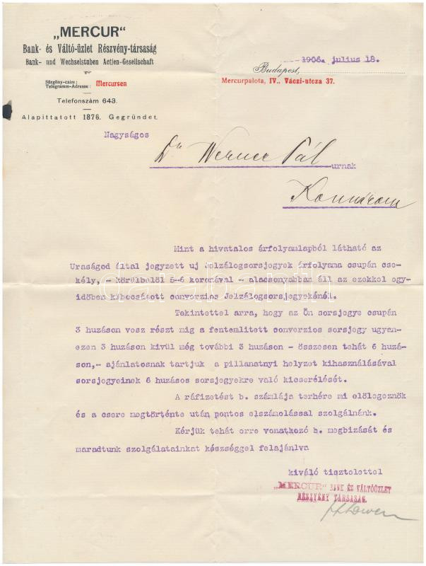 https://www.darabanth.com/en/262-Online-auction/262.0/Numismatics/Numismatics-documents-and-letters~200003/Budapest-1906-Mercur-Bank-es-Valto-uzlet-Reszveny-tarsasag-levele-sorsjegycsererol~II1302448