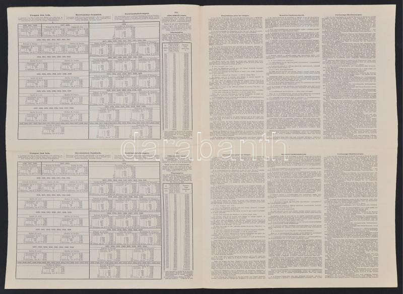 Budapest 1906. "Magyar Jelzálog-Hitelbank Nyeremény-Kötvény" "A" és "B" részkötvénye 100K-ról egy ívben, 3 nyelven, szárazpecséttel T:I-,II