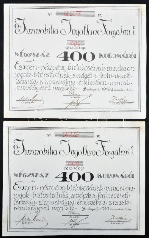 https://www.darabanth.com/en/262-Online-auction/262.0/Numismatics/Shares-and-Tickets~200006/Budapest-1919-Az-Immobilia-Ingatlan-Forgalmi-Reszvenytarsasag-5-reszvenye-400K-rol-szelve~II1286145
