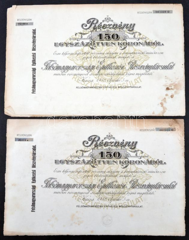 https://www.darabanth.com/en/262-Online-auction/262.0/Numismatics/Shares-and-Tickets~200006/Kassa-1918-Felsomagyarorszagi-Epitkezesi-Reszvenytarsulat-reszvenye-150K-rol-2x-mind~II1304443
