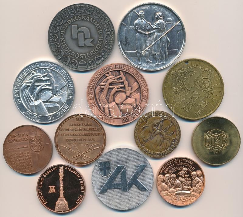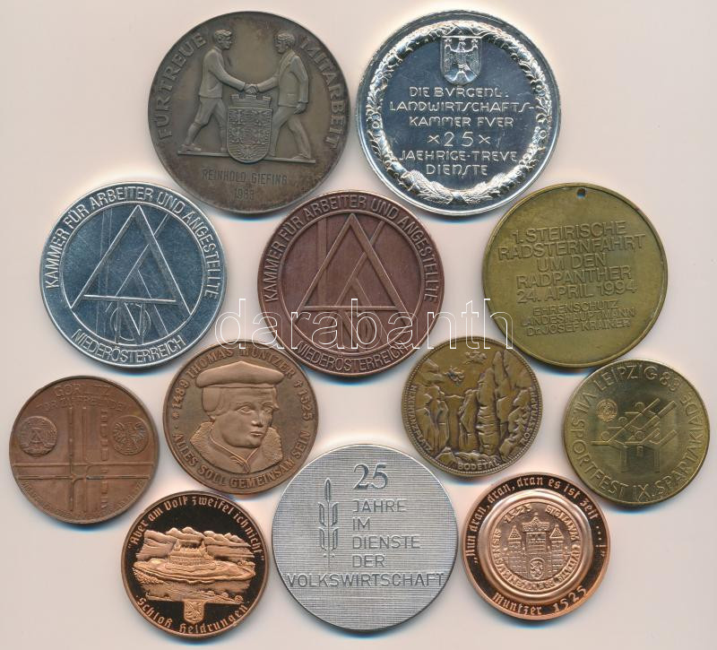 Description: 12db-os vegyes külföldi emlékérem tétel, főleg Ausztria és NDK érmek, közte "Thomas Müntzer", "Görlitz" T:vegyes