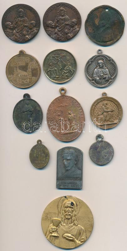 13db-os vegyes magyar és külföldi vallási témájú emlékérem, közte 1826. "XII. Leó pápa" Br emlékérem; Ausztria 1912. "XXIII. Nemzetközi Eucharisztikus Kongresszus Bécs 1912" Br emlékérem T:vegyes