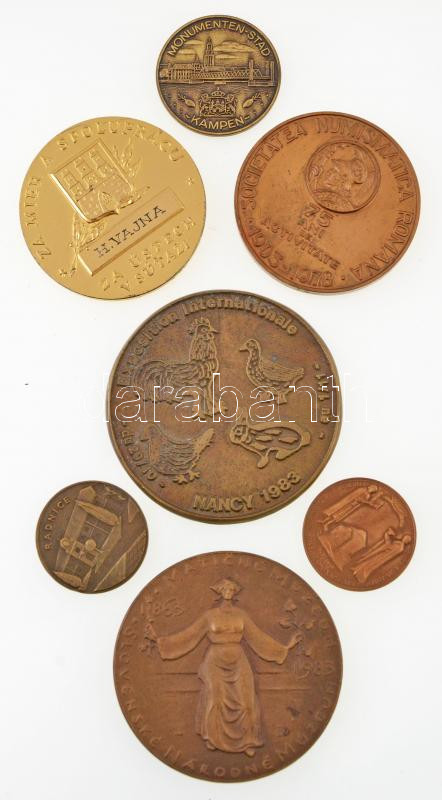 7db külföldi emlékérem, közte "Nancy Nemzetközi Kiállítás 1983", "Szlovák Nemzeti Múzeum", "Radnice", "Kampen", "Román Numizmatikai Társulat 75 éves" T:2 7pcs of commemorative medallion from different countries, between them "Nancy Exposition Internationale 1983", "Slovenské Národné Múzeum", "Radnice", "Kampen", "Societatea Numismatica Romana - 75 Ani de Activitate" C:XF