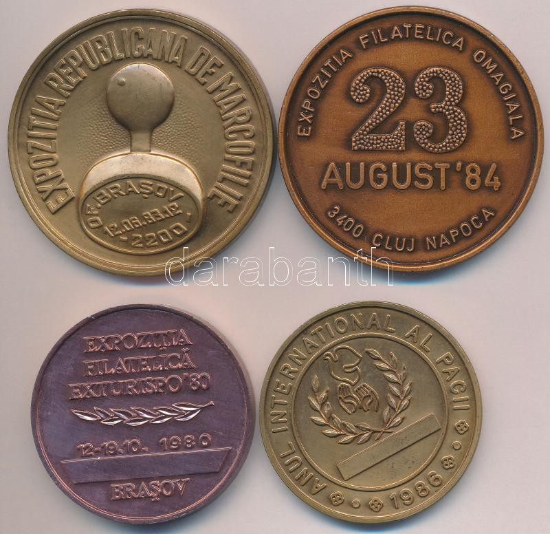 Románia 1980-1986. "Bélyegkiállítás" 4db klf emlékérem T:2