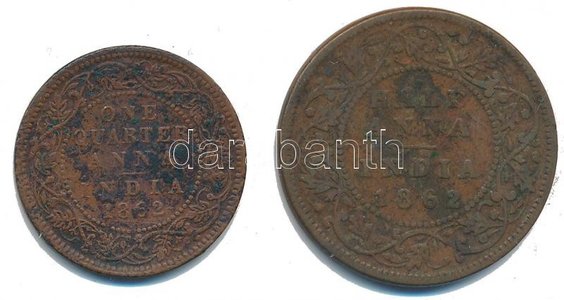 Brit-India 1862. 1/4A Cu + 1/2A Cu "Viktória" T:2-