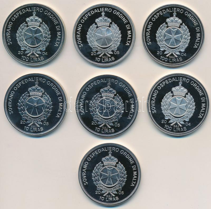 Sovereign Order of Malta 2004. 100 Liras (3xdiff) "Greece, Hungary, Malta in the EU" + 2005. 10 Liras "John Paul II" (4xdiff) C:PP