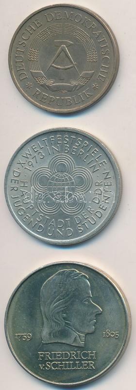 NDK 1969. 5M + 1972A 20M Cu-Ni "Schiller" + 1973A 10M Cu-Ni "10. Ifjúsági Játékok" T:2