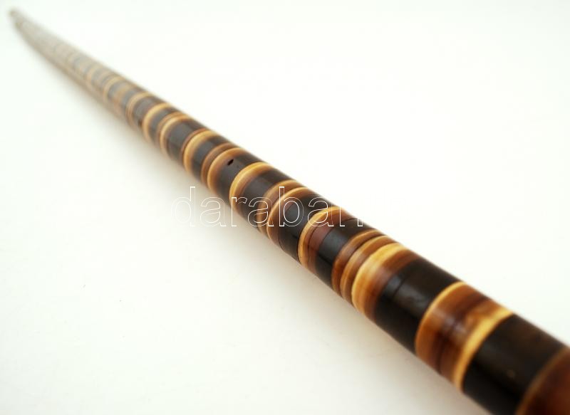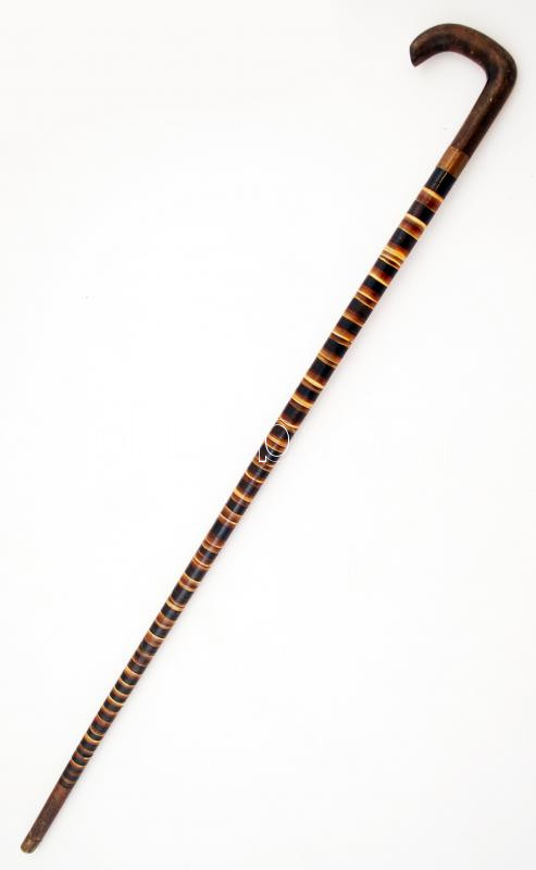 Szaru borítású fa sétabot, fém rátétekkel, h: 88 cm