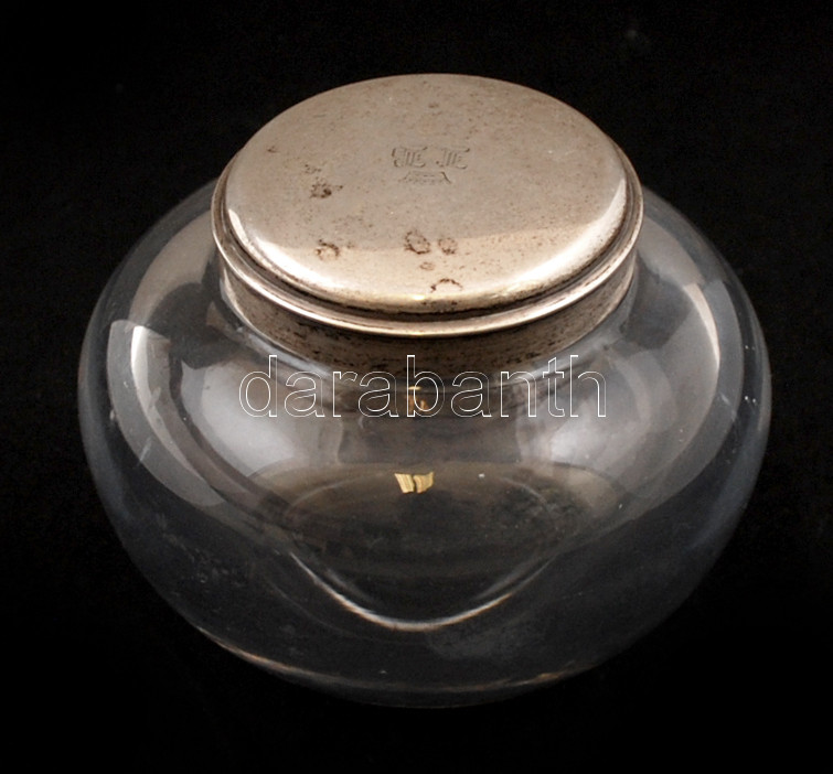 Üveg tégely antik ezüst (Ag.) fedővel, bárói monogrammal, jelzett (Béc...