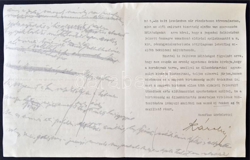 1933 Károlyi Gyula (1907-1942) politikus saját kézzel aláírt levele, m... https://www.darabanth.com/en/262-Online-auction/262.0/Other-collectibles/Autographs~24/1933-Karolyi-Gyula-1907-1942-politikus-sajat-kezzel-alairt-levele-melyben-allamkolcson-fe~II1302510