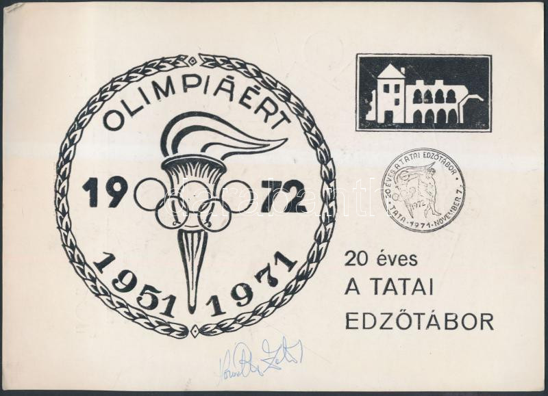 Horváth Zoltán (1937) olimpiai bajnok magyar kardvívó, edző aláírt emléklap az 1971-es tatai edzőtáborból + még egy emléklap