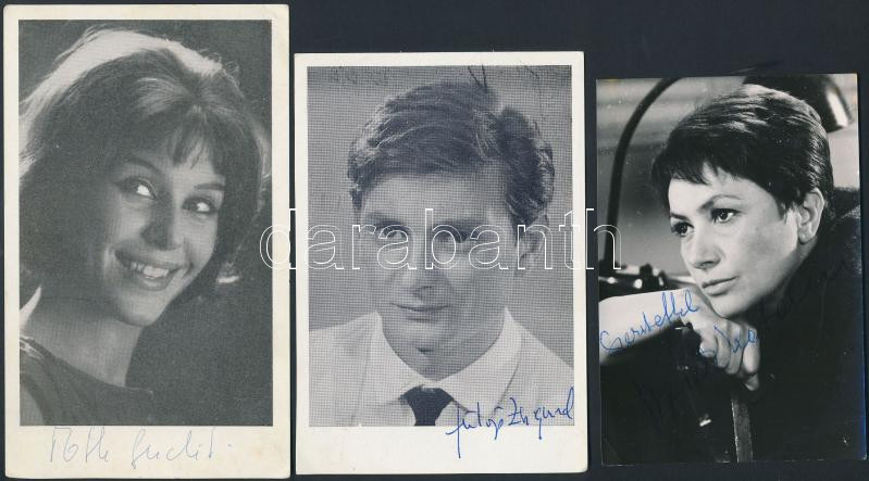Description: Színész, énekes saját kezű aláírás fotókon, nyomtatványokon: Berek Katalin, Benkő Péter, Tóth Judit, Fülöp Zsigmond, Nagy Attila, különböző méretben és minőségben, 9x6cm és 16x9cm között