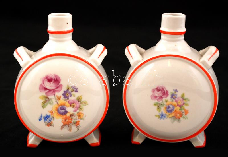 2 db virágmotívumos Kispesti Porcelán kulacs, matricás, jelzett, apró ...