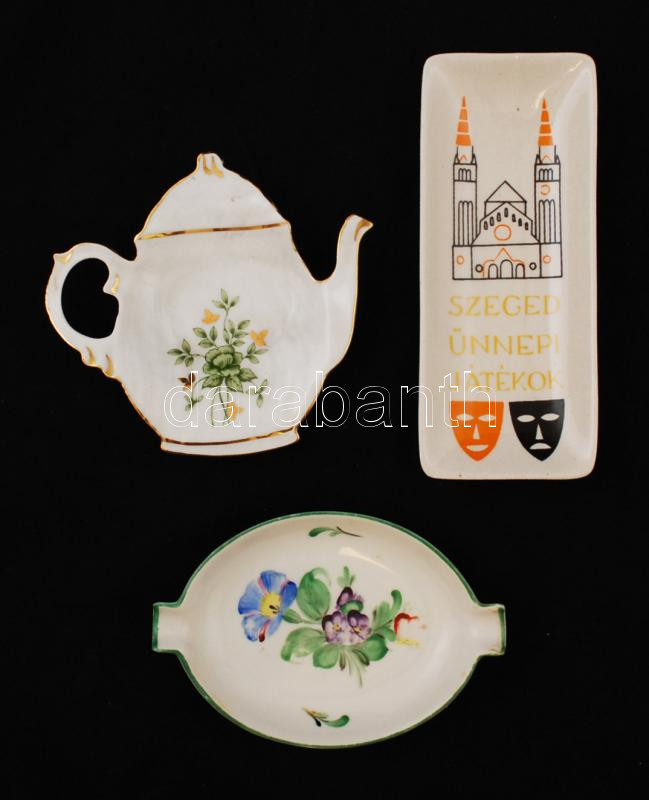 3 db különféle porcelán hamutál, jelzettek. Drasche, Hollóházi, Herend...