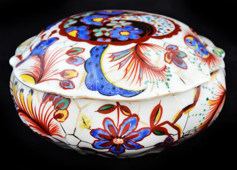Drasche porcelán bonbonier, sérüléssel, jelzett, d: 10,5 cm, m: 5,5 cm
