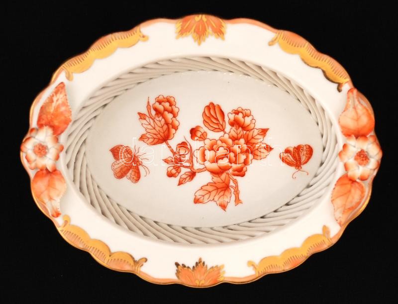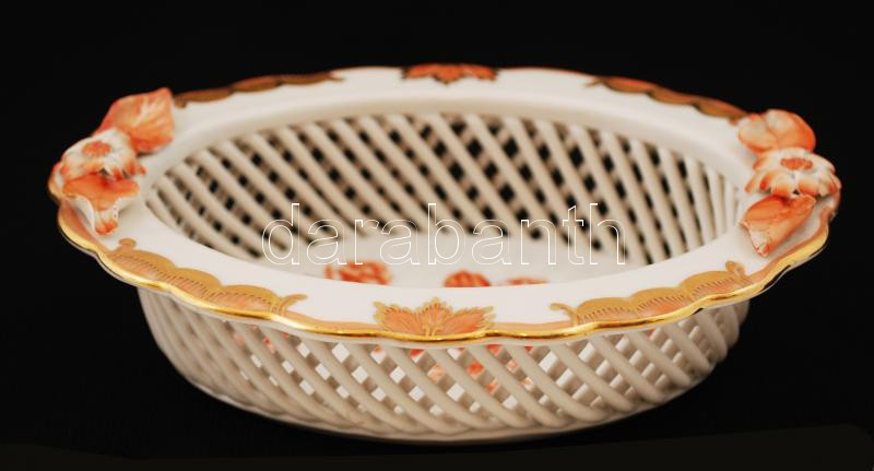 Herendi Viktória mintás kosár, kézzel festett (narancs), jelzett, rest...