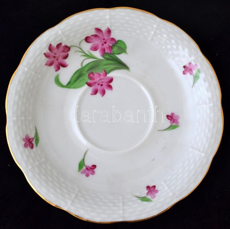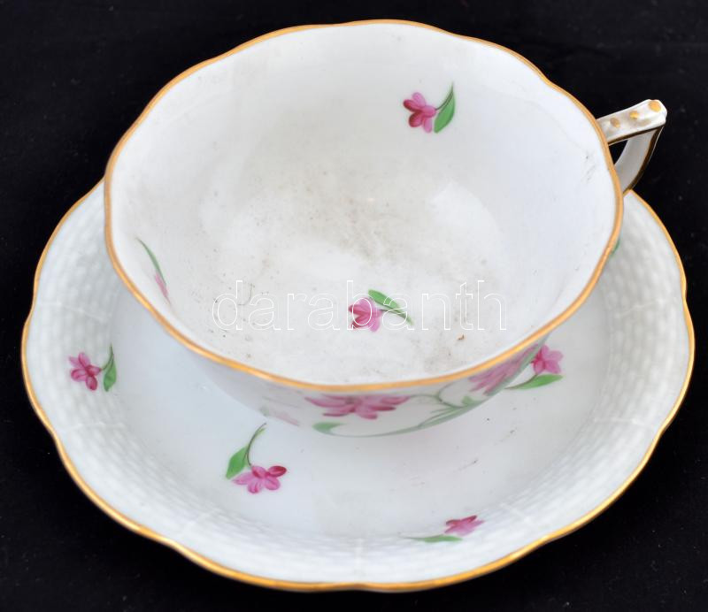 Herendi virágmintás csésze + alj, kézzel festett, jelzett, apró kopásn...