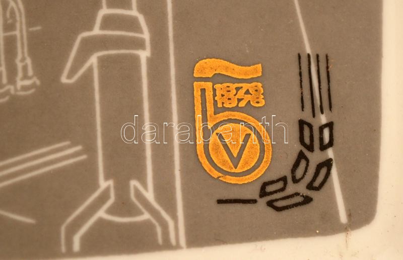 Hollóházi Budapesti Vegyiművek reklám tálka, matricás, jelzett, kopott...