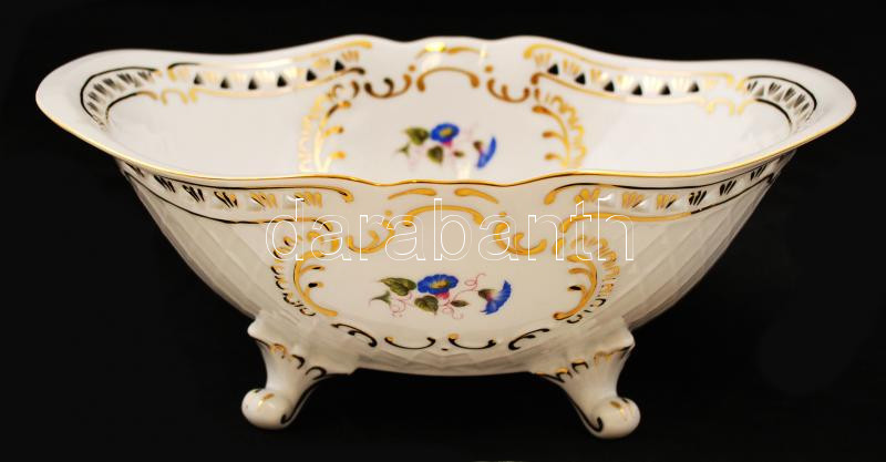 Hollóházi áttört porcelán tál, matricás, jelzett, kézi áttöréssel, apró kopásnyomokkal, 25×19×10,5 cm