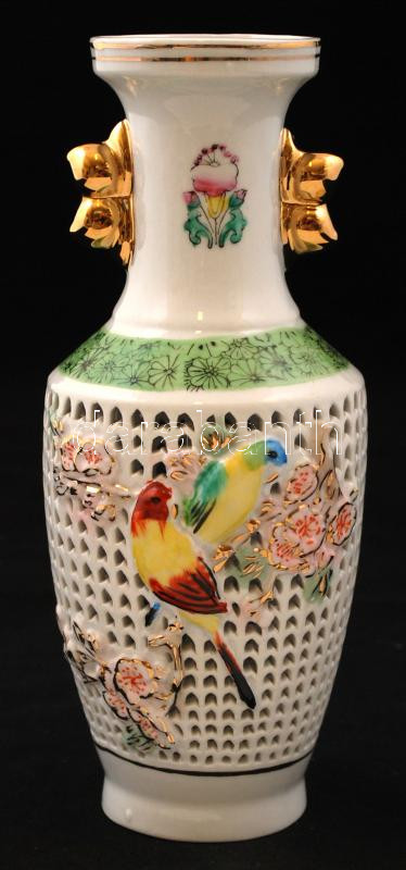 Kínai porcelán váza, kézzel festett, hibátlan, jelzett, m: 20,5 cm