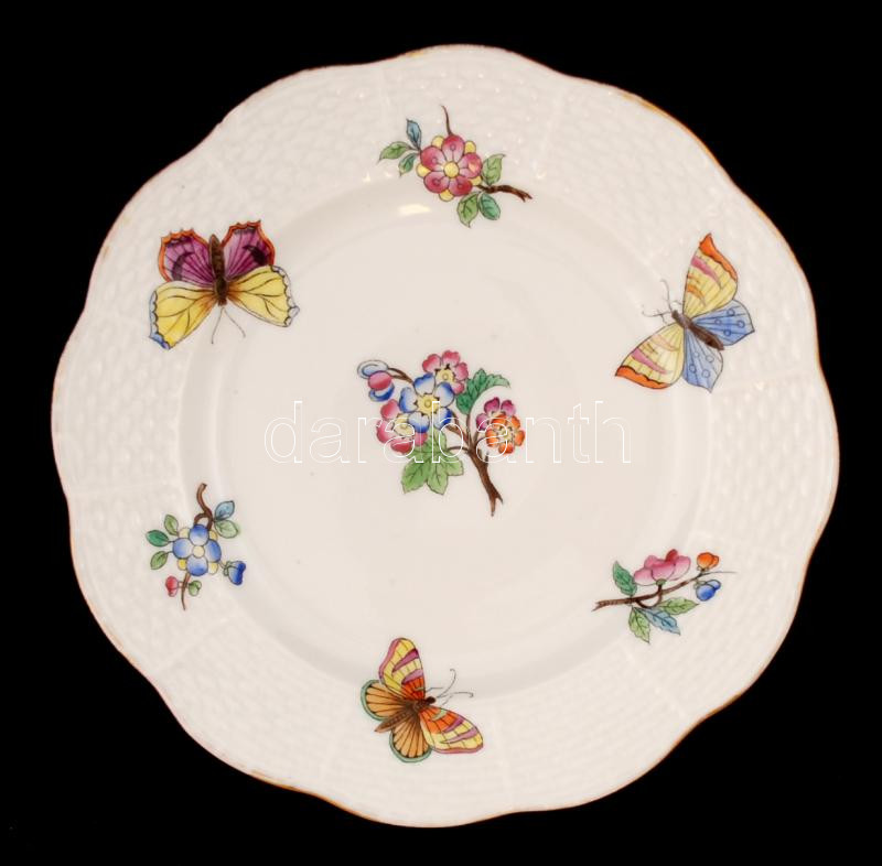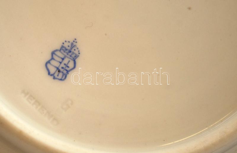 ÓHerendi kis tányér, kézzel festett, jelzett, kopott aranyozás, d:15 c...