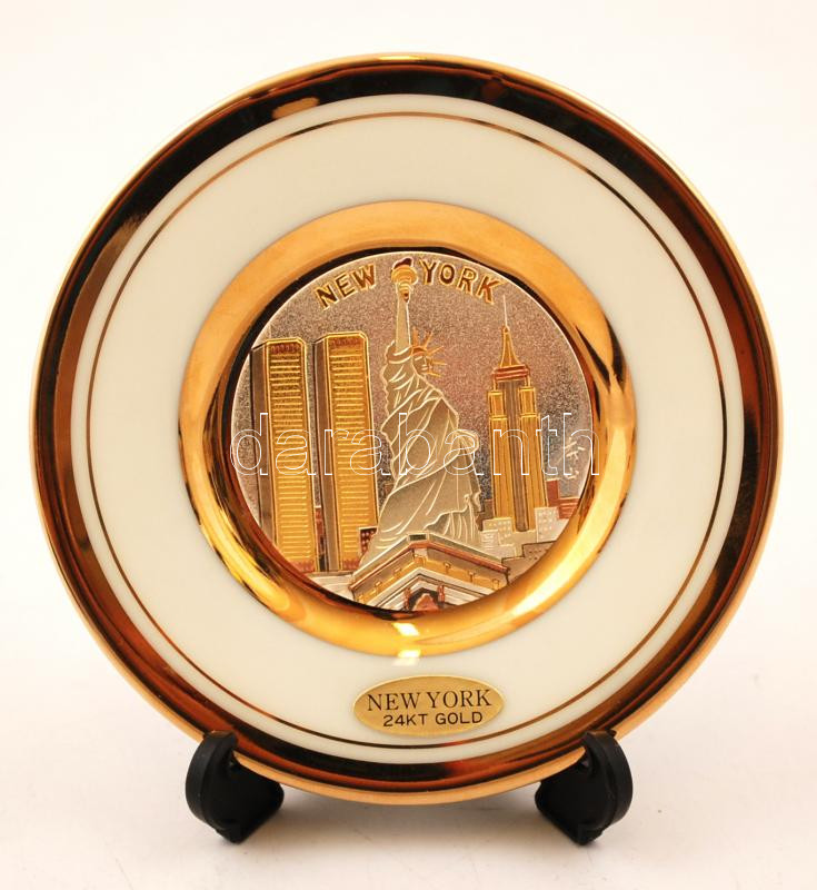 Porcelán tálka, chokin japán fémműves berakással, gyűjtői darab, aranyozott, jelzett, hibátlan, díszdobozban, d: 10 cm / Porcelain plate with Japanese art of chokin inlay, a collector's piece, goldplated, with mark, in its own case, d: 10 cm