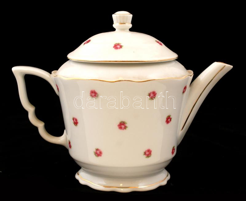 Zsolnay rózsa mintás kiöntő, matricás, jelzett, hibátlan, m:17 cm