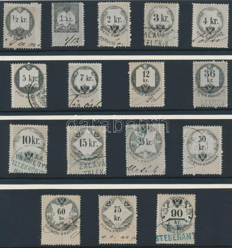 https://www.darabanth.com/en/262-Online-auction/262.0/Other-collectibles/Document-Stamps~19/1866-Okmanybelyeg-12kr-20ft-teljes-sor-feher-papiron~II1298867