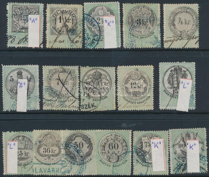 1868 Okmánybélyeg teljes sor, közte 8 db betűs vízjellel (28 db)