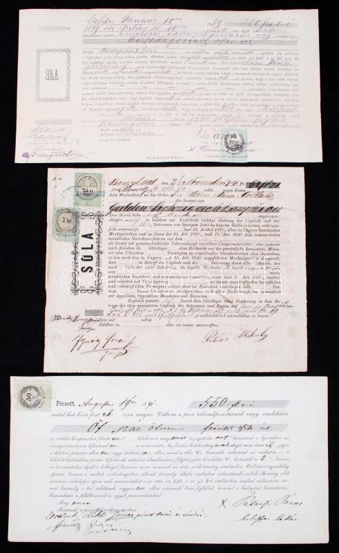 1871 3 db váltó, ollóval vágott okmánybélyegekkel / 3 bills of exchan...